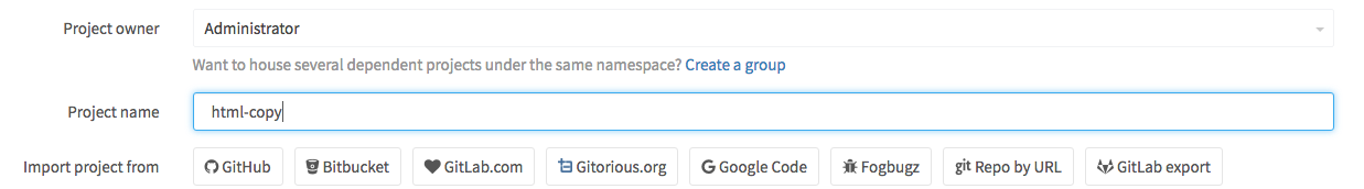 1. The new GitLab project import feature is at the far right of the import options when creating a New Project. Make sure you are in the right namespace and you have entered a project name. Click on GitLab export: